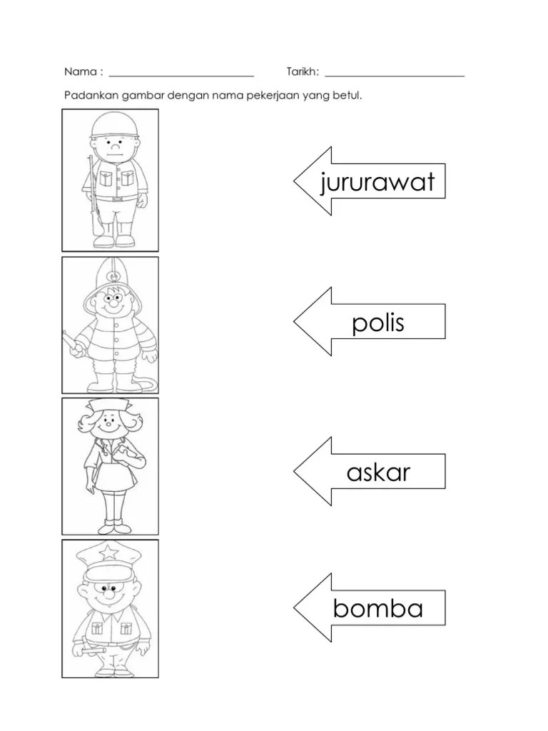 Padankan gambar dengan nama pekerjaan yang betul. Nampak macam sama setiap masa kan? Tema pekerjaan beruniform online activity for prasekolah. Mewarna lembaran kerja prasekolah tema pekerjaan beruniform : Pakaian (lembaran kerja tambahan) oliviaratna50. Cikgu nisa & sir faiz.